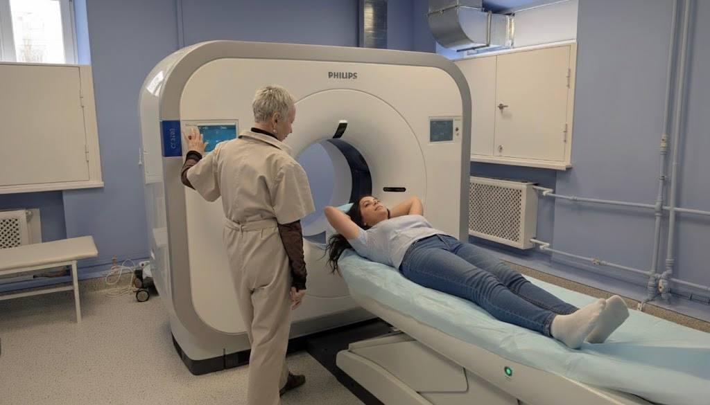 В поликлинике выполняются компьютерно-томографические исследования головного мозга, органов грудной клетки, брюшной полости и мягких тканей, в том числе с контрастным усилением. Исследования и расшифровку проводят квалифицированные врачи-рентгенологи и рентгенолаборанты, что обеспечивает высокую точность и качество диагностики.